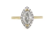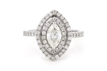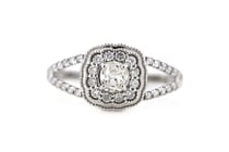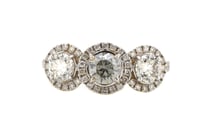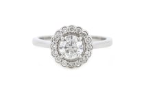 14K WHITE GOLD AND DIAMOND, HALO RING. The...