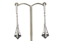 14K WHITE GOLD, BLACK DIAMOND AND DIAMOND, DROP...