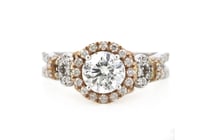 14K ROSE GOLD, FANCY PINK/CHAMPAGNE DIAMOND, HALO...