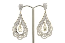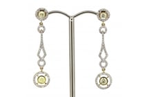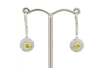 14K WHITE GOLD, FANCY YELLOW DIAMOND, DOUBLE DROP...