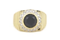 14K YELLOW GOLD, BLACK DIAMOND, GENTS RING....