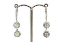 14K WHITE GOLD AND DIAMOND, HALO DROP EARRINGS....