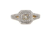 14K WHITE GOLD, FANCY YELLOW DIAMOND, DOUBLE HALO...