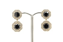 14K YELLOW GOLD, BLACK DIAMOND, HALO DROP...