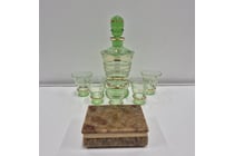 VINTAGE GLASS DECANTER WITH 5 GLASSES I GLASS HAS...