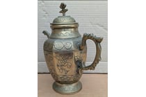 VINTAGE OLD BRASS TEAPOT WITH DRAGON AND FLORAL...