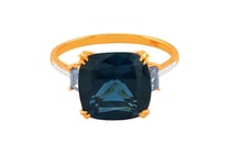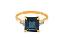 9CT YELLOW GOLD LONDON BLUE TOPAZ DIAMOND RING...