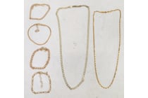 FOUR GOLD PLATED BRACELETS AND TWO GOLD PLATED...
