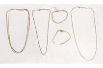 THREE YELLOW GOLD PLATED CHAIN NECKLACE AND TWO...
