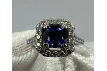 18K WHITE GOLD HALO DIAMOND RING WITH CUSHION CUT...