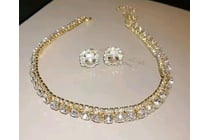 GOLD COLOUR NECKLACE EARRINGS WHITE RHINESTONE...