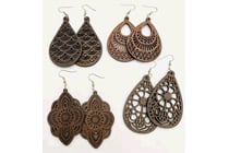 4 X PAIRS OF HOLLOWED WOODEN DROP EARIINGS...