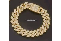 GOLD STAINLESS STEEL CUBAN LINK BRACELET WITH...