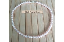 PALE PINK SOUTH SEA SHELL PEARL NECKLACE 8MM 925...