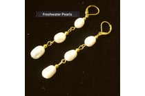 GOLD PLATED WHITE FRESHWATER PEARL LONG DROP...