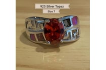 925 SILVER PINK CREATED OPAL TOPAZ RING SIZE 7...