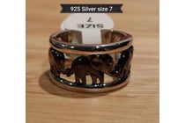 925 SILVER RING SIZE 7 WITH BLACK ELEPHANTS...