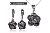 925 SILVER BLACK RHINESTONES EARRINGS AND...