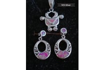 925 SILVER PINK CREATED OPAL EARRINGS AND PENDANT...