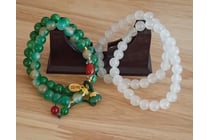 4 GREEN AND WHITE STONE STRETCH BRACELETS...