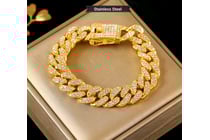 GOLD STAINLESS STEEL ZIRCON UNISEX BRACELET...