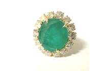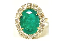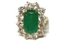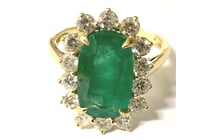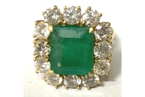 18CT YELLOW GOLD EMERALD AND DIAMOND RING...