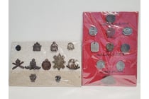 WORLD WAR I AND II MILITARY CAP BADGES, COLLAR...