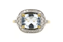 14K YELLOW GOLD, AQUAMARINE AND DIAMOND, HALO...