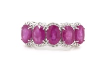 14K WHITE GOLD, RUBY AND DIAMOND, MULTI-ROW...