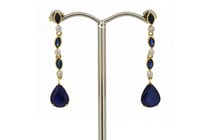 14K YELLOW GOLD, SAPPHIRE AND DIAMOND, DROP...