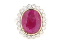 14K WHITE/YELLOW GOLD, RUBY AND DIAMOND, HALO...