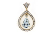 14K YELLOW GOLD, AQUAMARINE AND DIAMOND,...