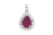 14K WHITE GOLD, RUBY AND DIAMOND, HALO PENDANT....
