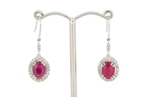 14K WHITE GOLD, RUBY AND DIAMOND, DOUBLE HALO...