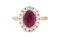 14K ROSE GOLD, RUBY AND DIAMOND, HALO RING. THE...