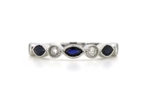 14K WHITE GOLD, BLUE SAPPHIRE AND DIAMOND, DRESS...