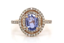 14K ROSE GOLD, TANZANITE AND DIAMOND, HALO RING....