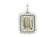 14K WHITE GOLD, HELIODOR AND DIAMOND, DOUBLE HALO...