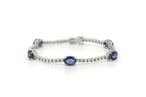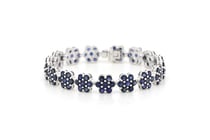 14K WHITE GOLD, BLUE SAPPHIRE, FLORAL BRACELET...