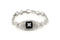 14K WHITE GOLD, BLACK ONYX AND DIAMOND, ART DECO...