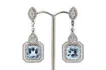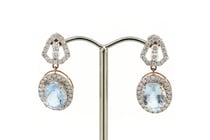 14K ROSE GOLD, AQUAMARINE AND DIAMOND, DROP...