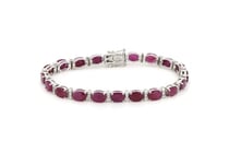 14K WHITE GOLD, RUBY AND DIAMOND, LINE BRACELET...