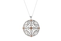 14K WHITE GOLD AND DIAMOND, DECORATIVE PENDANT...