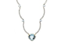 14K YELLOW GOLD/RHODIUM PLATED, AQUAMARINE AND...