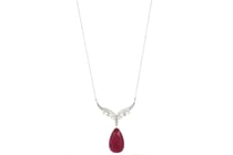 14K WHITE GOLD, RUBY AND DIAMOND, NECKLACE...