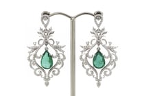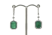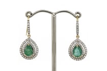 14K WHITE GOLD, EMERALD AND DIAMOND, HALO DROP...