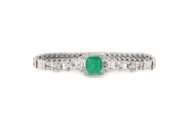 14K WHITE GOLD, EMERALD AND DIAMOND, ORNATE...