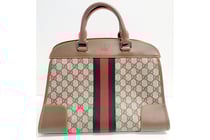 GUCCI GG SUPREME DUFFLE TOTE WITH BROWN LEATHER...