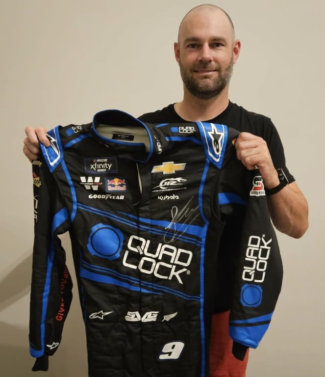 SHANE VAN GISBERGEN POLE-WINNING NASCAR SUITKiwi Shane Van Gisbergen has been creating his own piece of history in the US in 2025 and here is your chance to own your own little piece of it.This is SVG’s pole-winning suit from the Pit Boss/FoodMaxx 250 NASCAR Xfinity race held on Saturday July 12 at Sonoma in California..The former Supercars champion was driving the #9 QuadLock Chevrolet for JR Motorsports and went on to finish second in the race.The race, contested over 79 laps, was won by SVG’S teammate Connor Zilisch.Zilisch fended off a hard-charging Shane van Gisbergen who nearly passed him after the two drivers made contact on the final lap in turn 7. Qualifying was held on Friday, July 11. Since Sonoma Raceway is a road course, the qualifying procedure used is a two-group system with one round. Drivers were separated into two groups, A and B. Each driver had multiple laps to set a time.SVG scored the pole with a lap of 1:15.259, and a speed of 95.191 mph (153.195 km/h) on the permanent road course set in the heart of Californian wine country.Donor: Shane Van Gisbergen