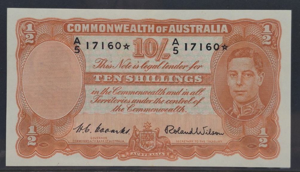 1952 AUSTRALIAN TEN SHILLING STARNOTE COOMBS/WILSON Condition: Aunc 586112+6